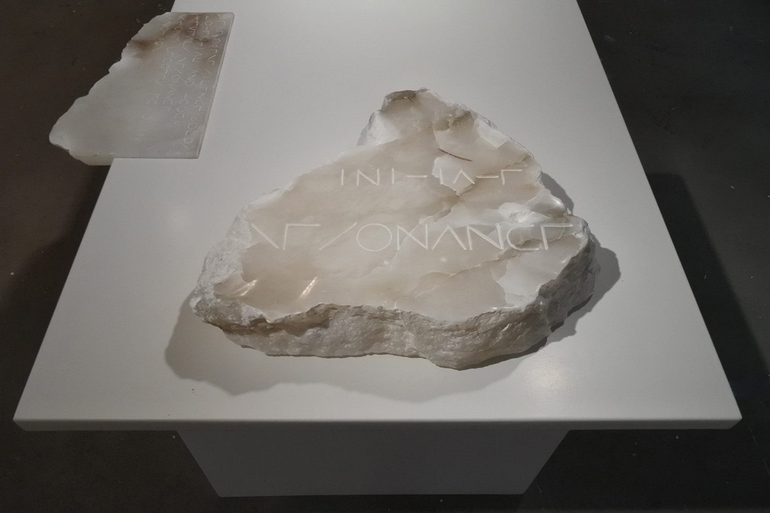 Touch in Resonance invites visitors to experience a living connection between two stones (Albaster) through touch. The installation makes tangible that we are not separate from one another, but constantly in vibration with each other. A small movement, touch, or an inner impulse can create an echo in another. The work explores how meaning emerges through transmission between bodies, even without word. in this way, the installation functions as an sensory metaphor for human connection and communication.